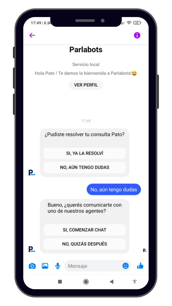 No te preocupes, el equipo de Parlabots estará disponible para ayudarte. Podrás escribirnos a soporte@parlabots.com.ar o comunicarte a través del chat que se encuentra dentro de la plataforma, en el menú superior derecho.